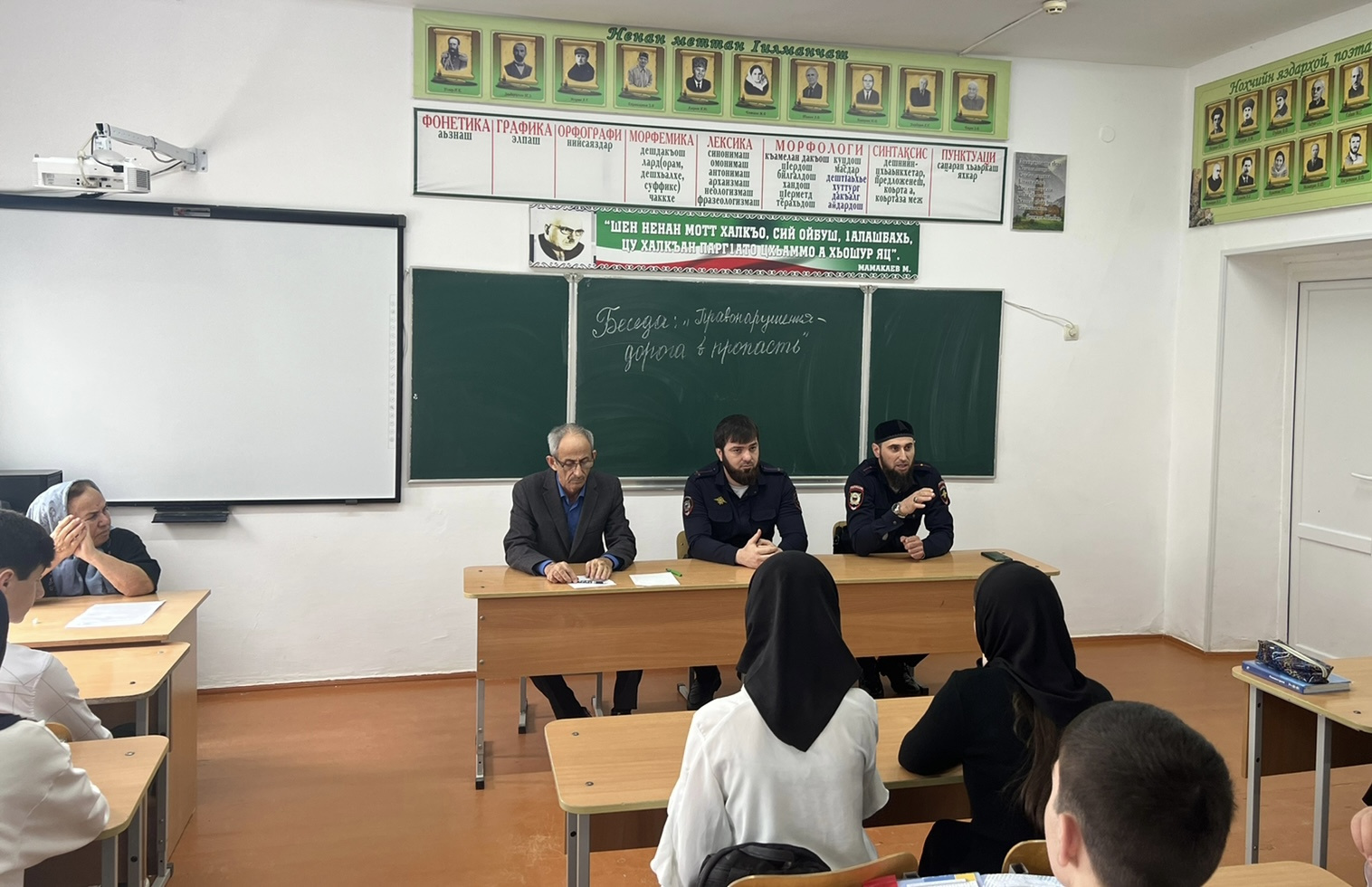 В рамках мероприятий состоялась беседа с обучающимися по профилактике преступлений и правонарушений, связанных с незаконным оборотом наркотических средств и психотропных веществ, административных правонарушений и уголовной ответственности. По данным вопросам выступили инспектор ОПДН ОУУП и ПДН лейтенант полиции по Шалинскому району Оздамиров М., также уполномоченный полиции, младший лейтенант полиции по Шалинскому району Эльжуркаев Р.