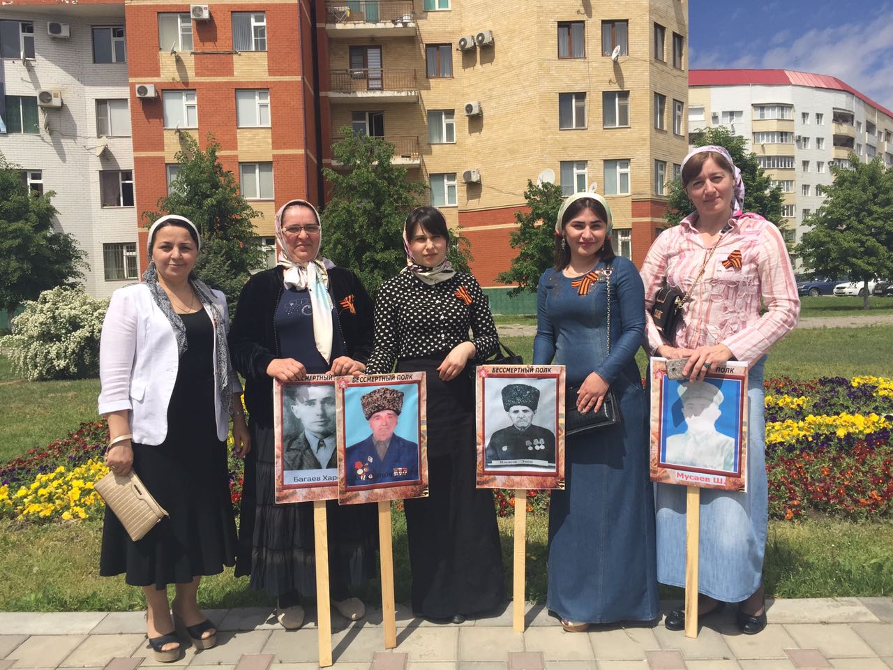 Также в колонне «Бессмертного полка» прошли родственники фронтовиков, активисты общественных организаций, школьники, студенты, внуки и правнуки, вышедшие в составе колонны, а также бывшие жители Чечни, дети и внуки тех, кто воевал на фронтах Великой Отечественной.