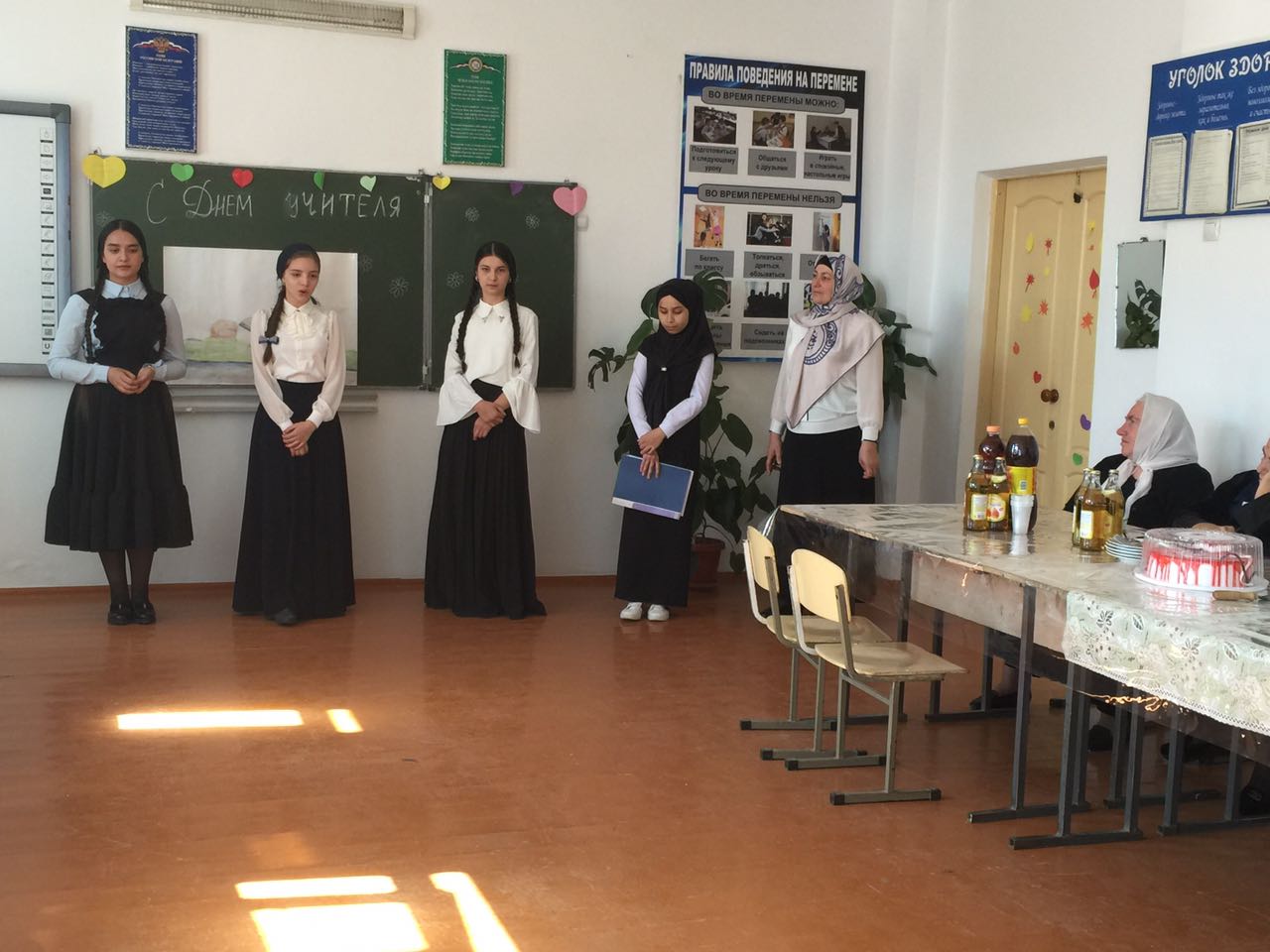 Сегодня этот торжественный праздник в СОШ №1 с. Герменчук, посвященный для всех учителей школы, провели учащиеся 10 "А" кл под руководством своего классного руковдителя Хатуевой Луизы Махмудовны.