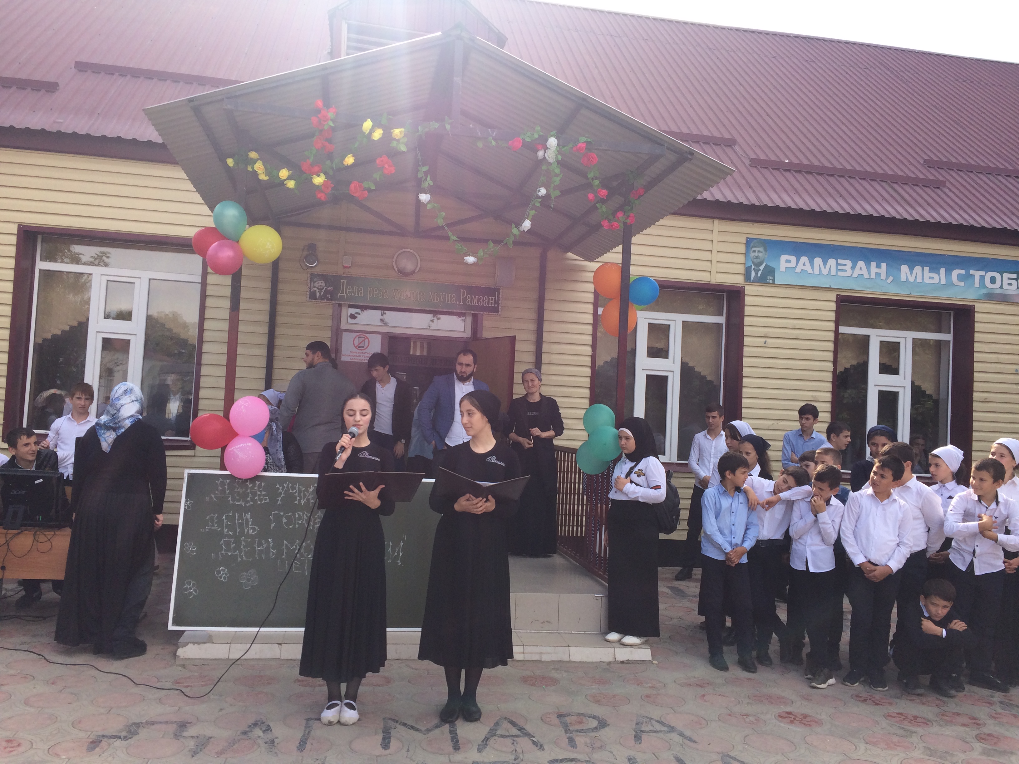 04.10.20184 октября 2018 г в школе прошел праздничный концерт «Учитель- главная профессия на земле!». Заранее был украшен фасад школы. Под звуки музыки ведущие начали свое выступление. Традиционно педагогов поздравила директор школы СалаватоваА.Д., а также зам. директора по ВР Цуцулаева Б.М-Э.