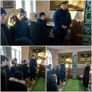 10.01.2019Также сегодня в МБОУ"СОШ 1 с.Герменчук" была организована поездка в зиярт с.Герменчук. Заместитель директора по ВР Цуцулаева Б.М-Э. и педагог- организатор по ДНВ Джабраилов С.Ю вместе с учащимися посетили зиярт 1авди нана Цули йо1 Жансу в честь почитания священного Эвлия Кунта-Хаджи Кишиева (да будет возвышена его тайна).Дети были рады, всех интересовала история этого зиярта.Джабраилов С.Ю отвечал на интересующие их вопросы.