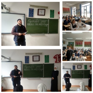 11.03.2019Сегодня,11.03.2019г.,в МБОУ "СОШ 1с.Герменчук" в соответствии с планом по реализации Единой Концепции по духовно-нравственному воспитанию подрастающего поколения педагог-организатор Джабраилов С.Ю. совместно с зам.директора по ВР Цуцулаевой Б.М-Э. провели беседу с учащимися 10-11классов на тему: "Бусалба дино емал йо терроризм!"