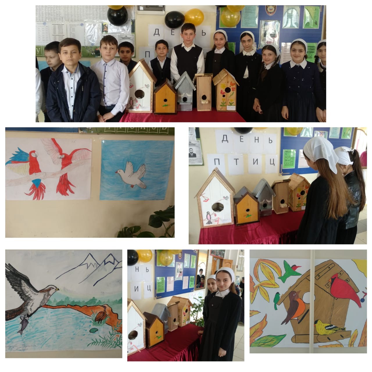 Птицы- символ свободы, красоты, счастья.Они неотъемлемая часть природы.Сегодня,2.04.2019 г ,в МБОУ "СОШ 1 с.Герменчук" зам директора по ВР Цуцулаева Б.М-Э. организовала выставку, посвященную Дню птиц.На выставке были представлены разные поделки учащихся, скворечники, а также красочные стенгазеты.Учащиеся с большим интересом приняли участие в организации выставки.